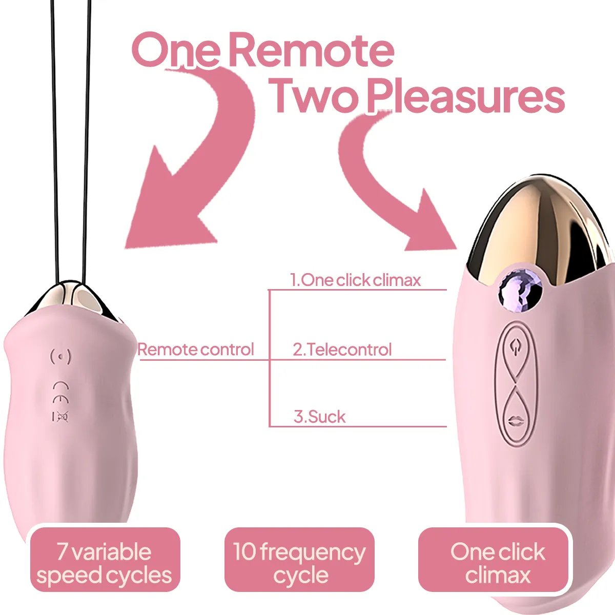 - Funktionen der Fernbedienung: 7-Kanal Saugfunktion, 10-Kanal Vibration, 1-Touch Orgasmus