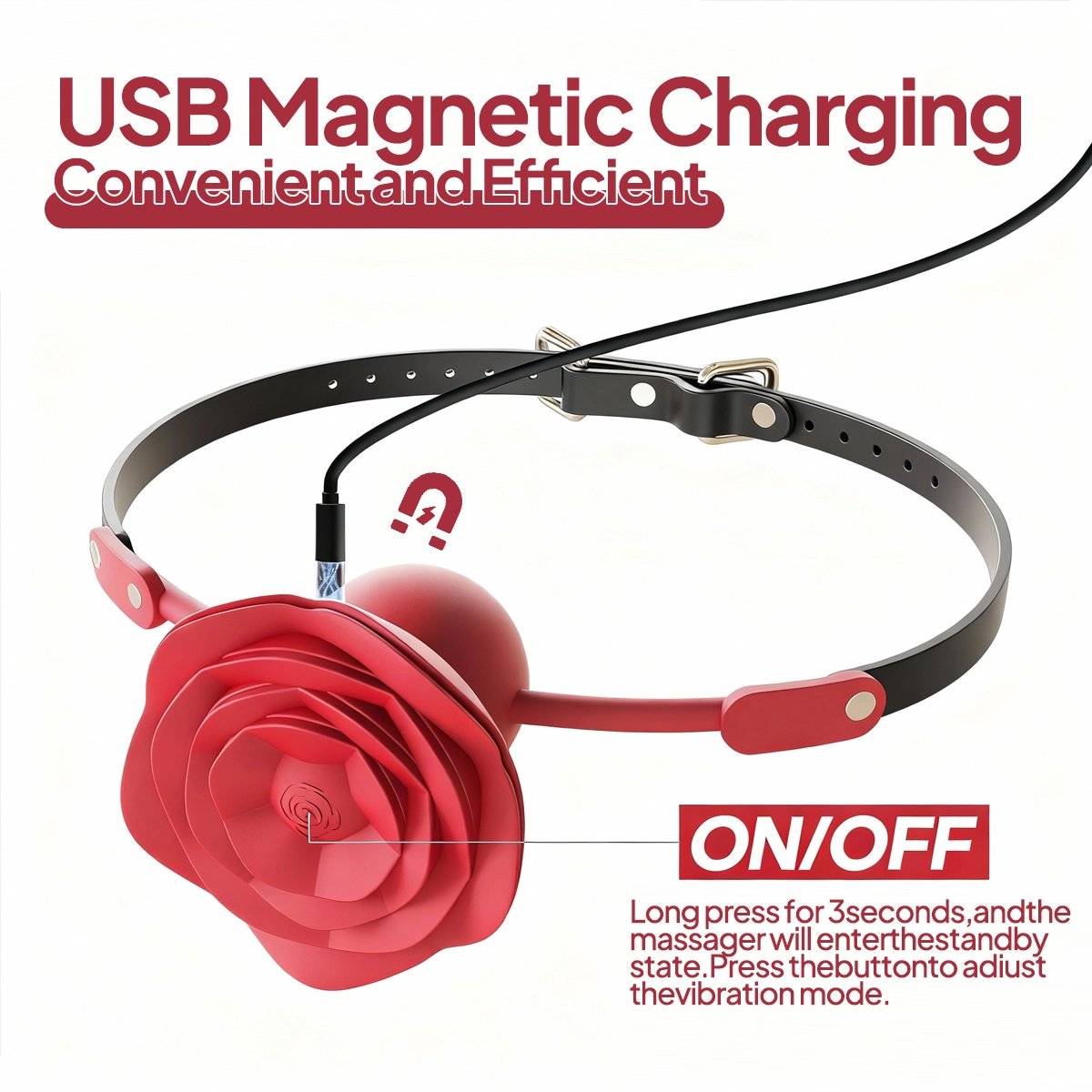 - Package Includes: Aiersha Rose Tether Nipple Stimulator, Magnetic USB Charging Cable, Instruction Manual, and a discreet Storage Bag