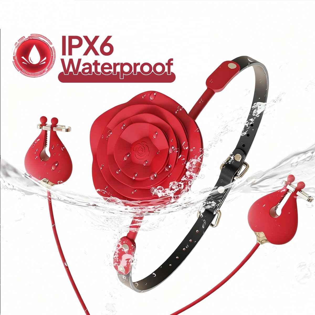 Aiersha Rose Tether: Magnetic Vibration Nipple Stimulator & Traction Clamps