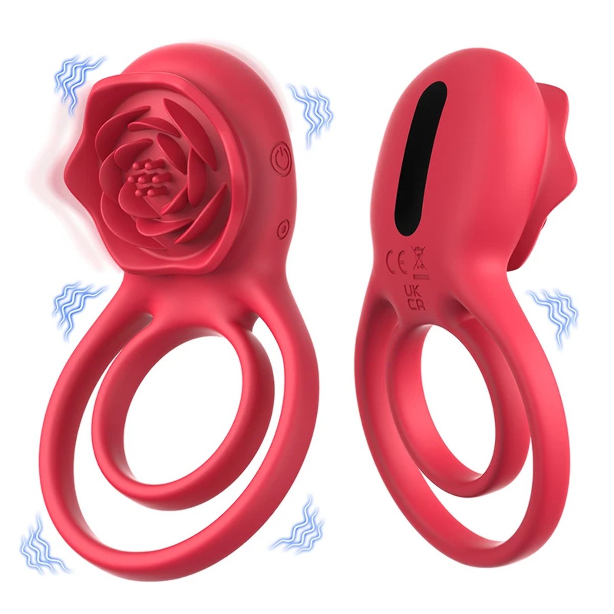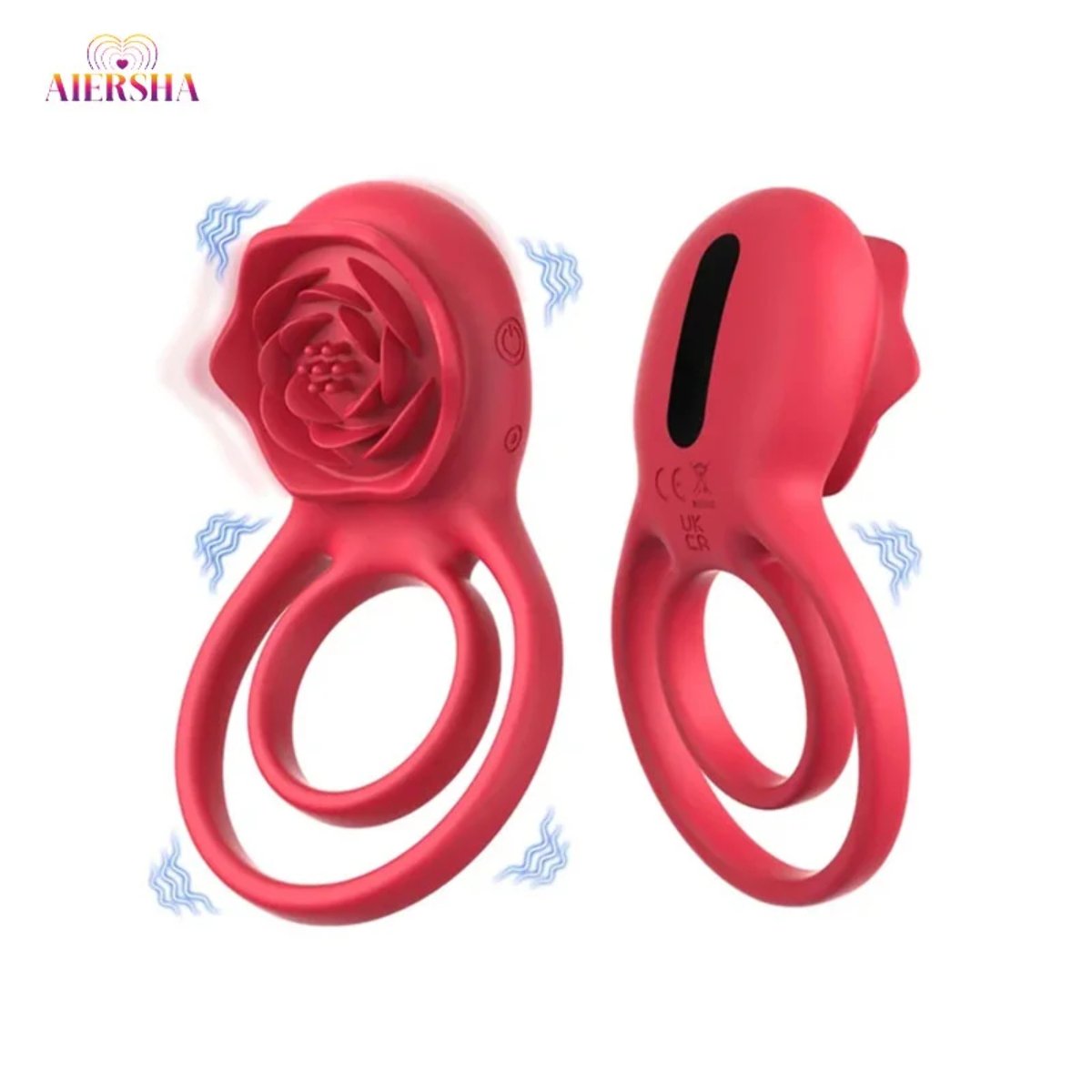 Vibrating Cock Ring with Rose toy Clitoral Stimulator Pleasure Penis Ring Vibrator Couples Adult Sex Toys for Men Women