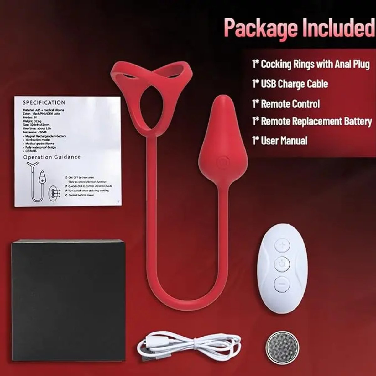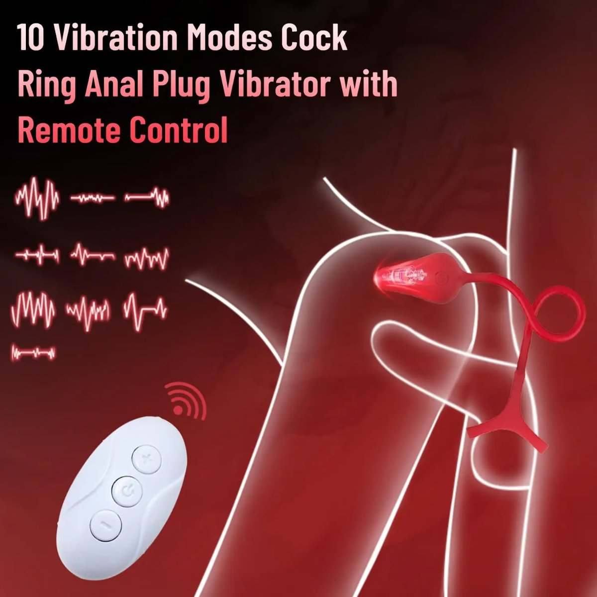 2 In 1 Cock Ring Sex Toys for Men Penis Ring Couple Vibrator with 10 Vibration Modes Soft Silicone Anal Sex Toys for Couples