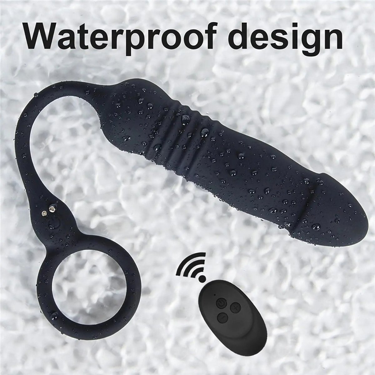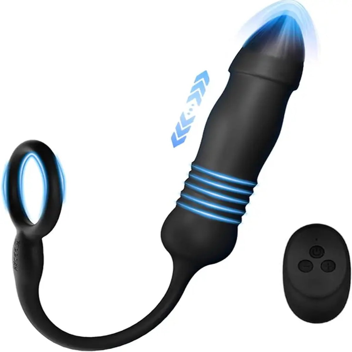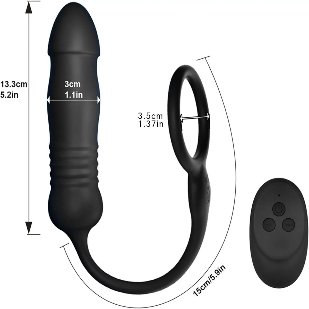 Thrusting Anal Vibrator Prostate Massager with Penis Ring Sex Toy Vibrating Anal Butt Plug Dildo for Men Women Couples