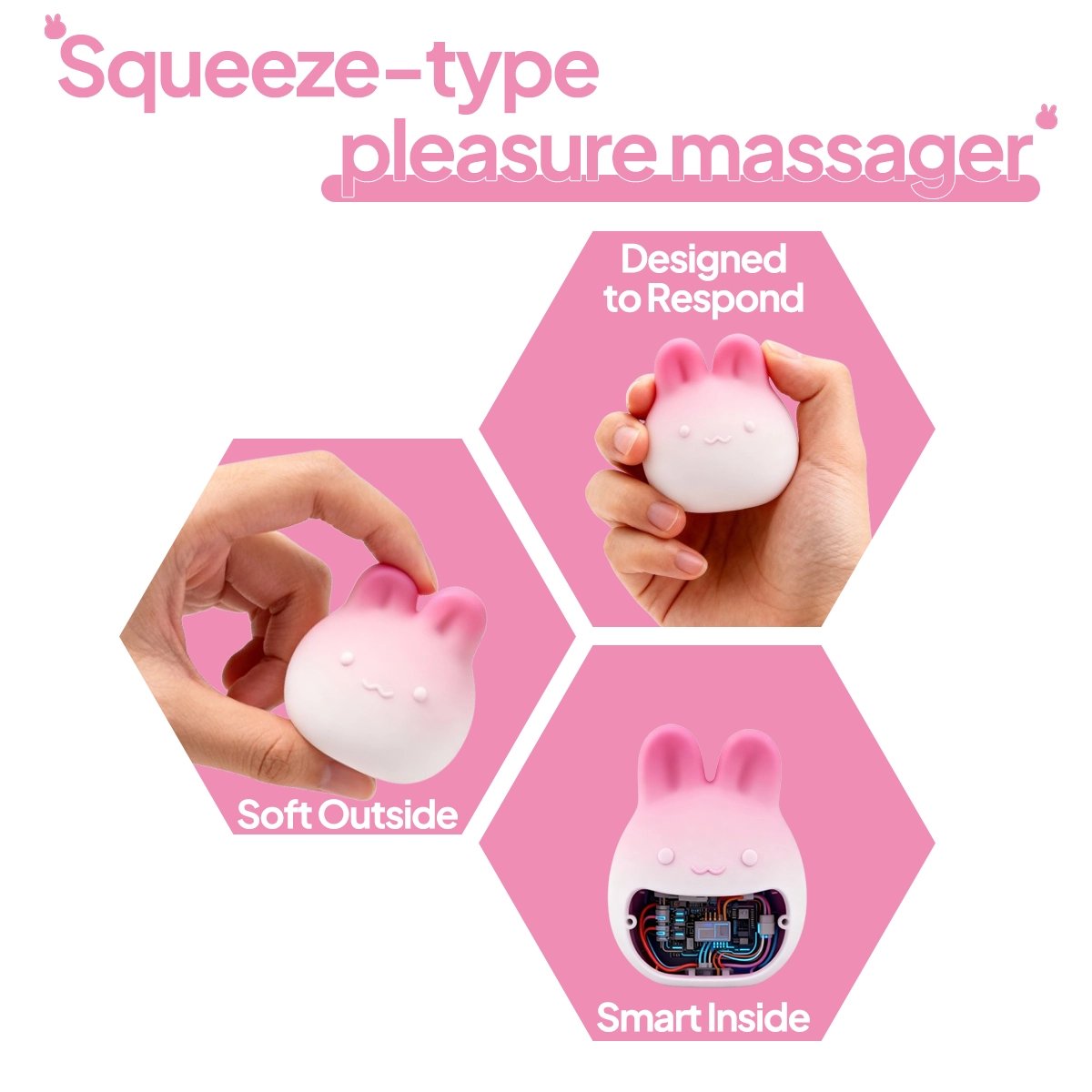Experience a new dimension of pleasure with the Aiersha Blush Bunny Sense, an innovative clitoral stimulator designed to elevate your intimate moments. This delightful air pulse vibrator features a unique "Squeeze to Feel" technology, allowing you to control your sensations intuitively. With its responsive squeeze-sensor control, you can easily intensify your pleasure by simply adjusting your grip, making it a truly interactive experience.