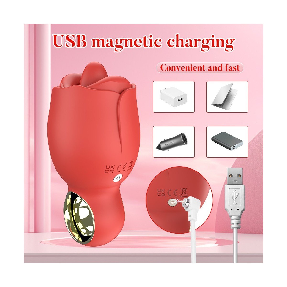 - Ventajas: La carga es conveniente y rápida, con una conexión magnética segura que elimina la necesidad de puertos complicados y facilita mantener el vibrador cargado.