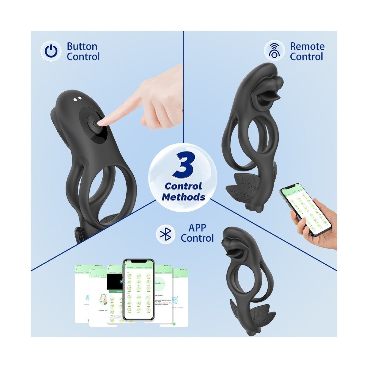 - Material: Silicona segura para el cuerpo + ABS.